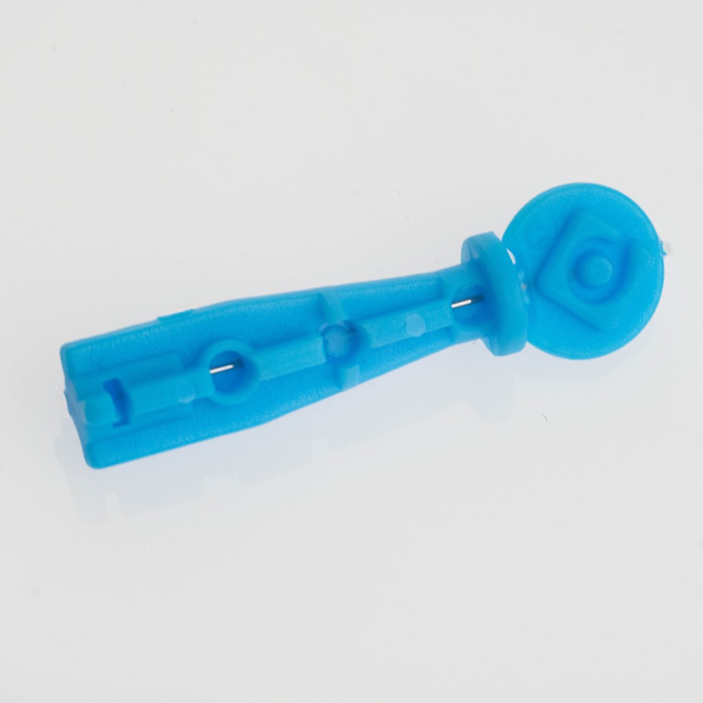Blood Lancet device used to puncture the skin, typically the fingertip or ear lobe, for retrieving a small blood sample for analysis.