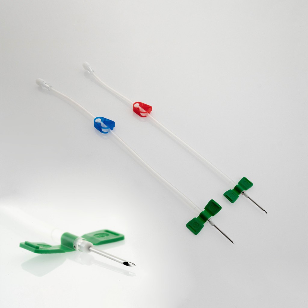 Fistula needle set include female Luer Lock, needle of specified gauges with butterfly, safety for safe disposal, tubing with clamp, and two different protective caps designed to maintain sterility of the
