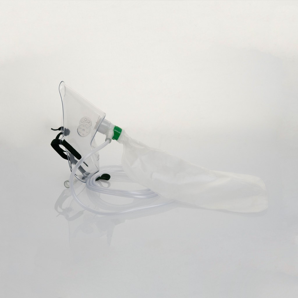 Oxygen tube 14 Fr x 150 cm, x2 Adaptor ID 14 Fr, non-rebreathing mask with elastic strap, and reservoir bag