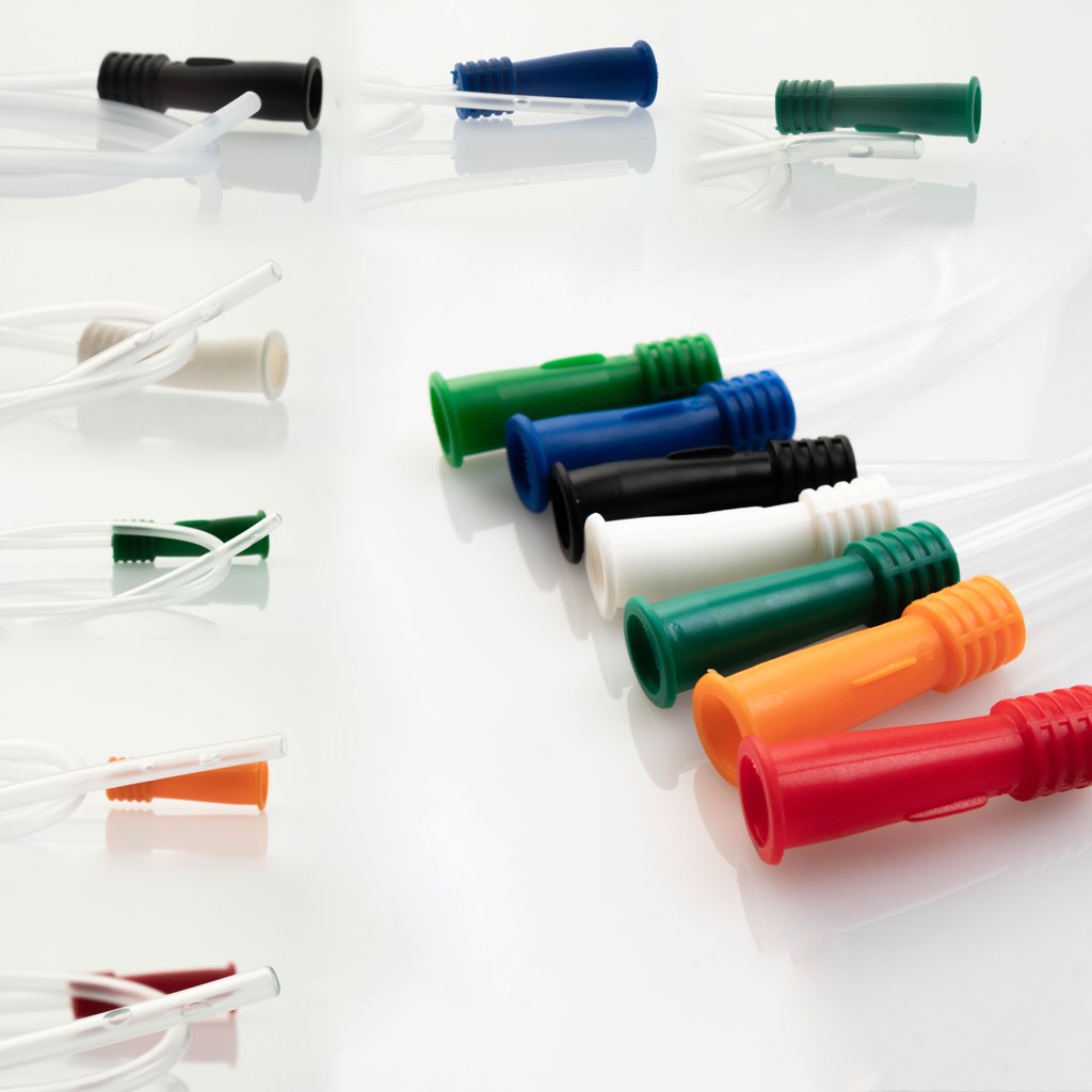 Suction catheters are flexible long tubes manufactured from nontoxic medical grade PVC and are used to keep the airway clear of secretions. They are atraumatic, soft, and have a rounded open tip with one lateral eye.
